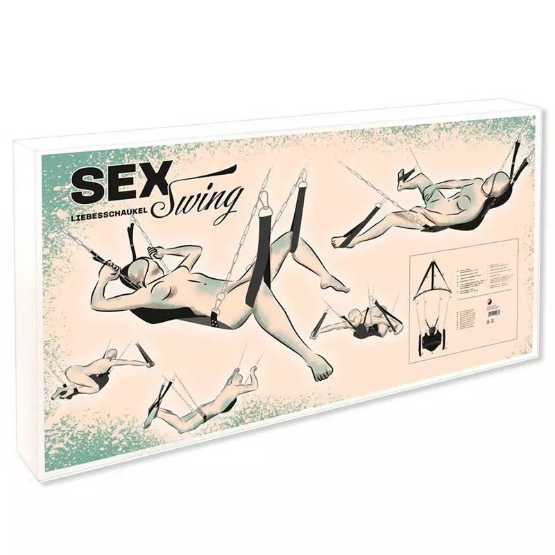 Sex Swing de la marque You2Toys : une balançoire érotique BDSM qui s’attache avec des demi-anneaux avec des chaînes robustes pour être fixée au plafond de la chambre à coucher !