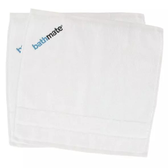 Deux petites lingettes faites dans un tissu éponge super-absorbant pour essuyer votre Bathmate.
