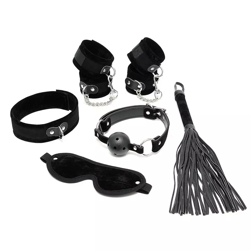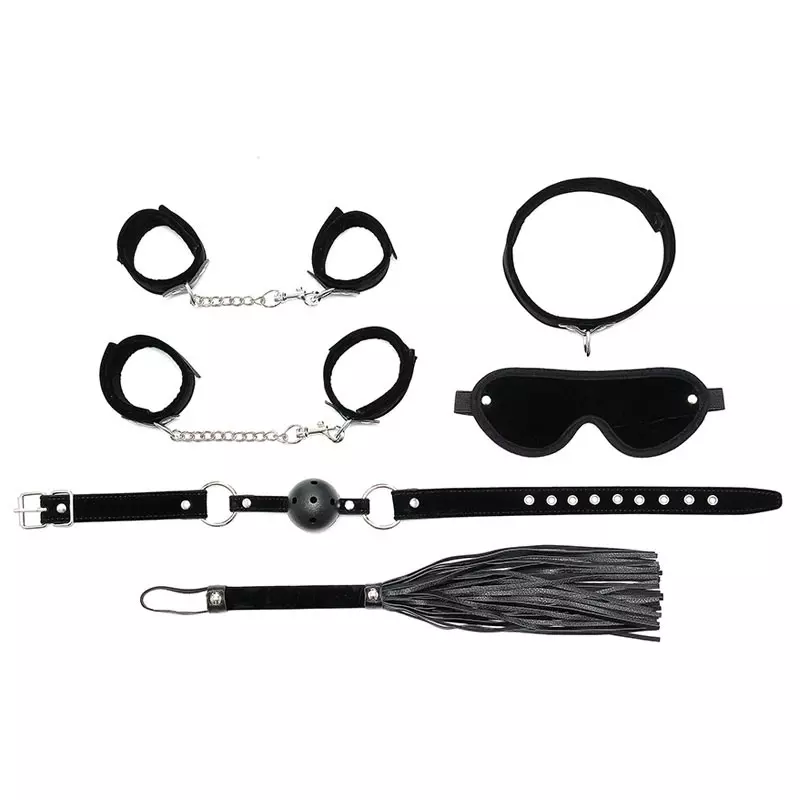Avec cet ensemble de bondage, vous allez pouvoir attacher votre partenaire, le contraindre au silence et exacerber ses sens en lui bandant les yeux sans oublier le martinet pour lui infliger des punitions.