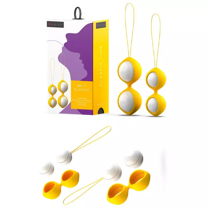 Voici Bfit Classic, un set raffiné composé de quatre boules de geisha lestées pesant vingt-huit et trente-huit grammes avec deux fixations en silicone soyeuse.