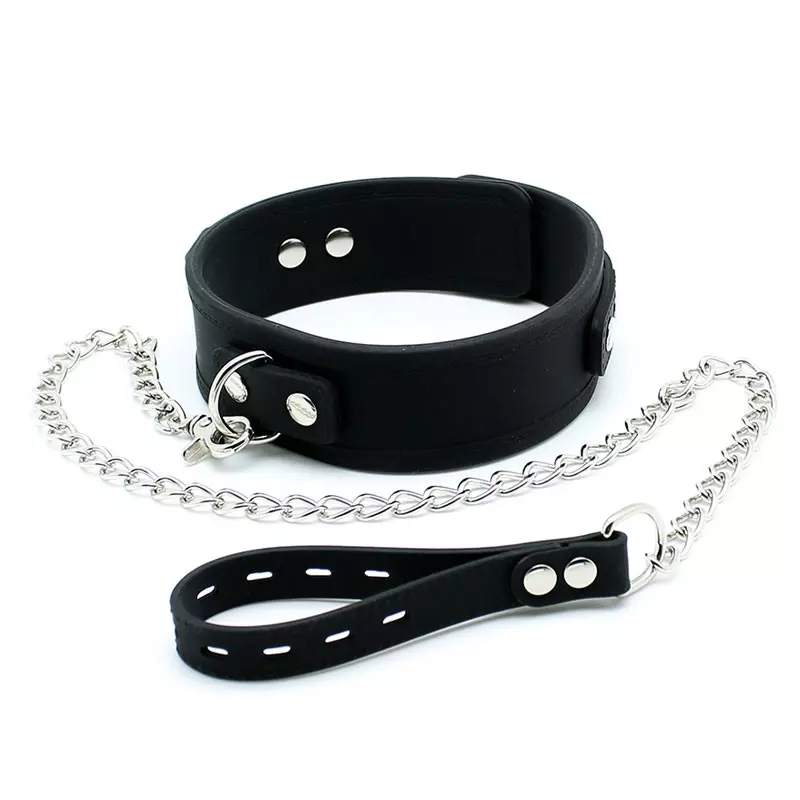 Collier BDSM en silicone : Un collier de chien accompagné de sa laisse en métal pour une domination totale !