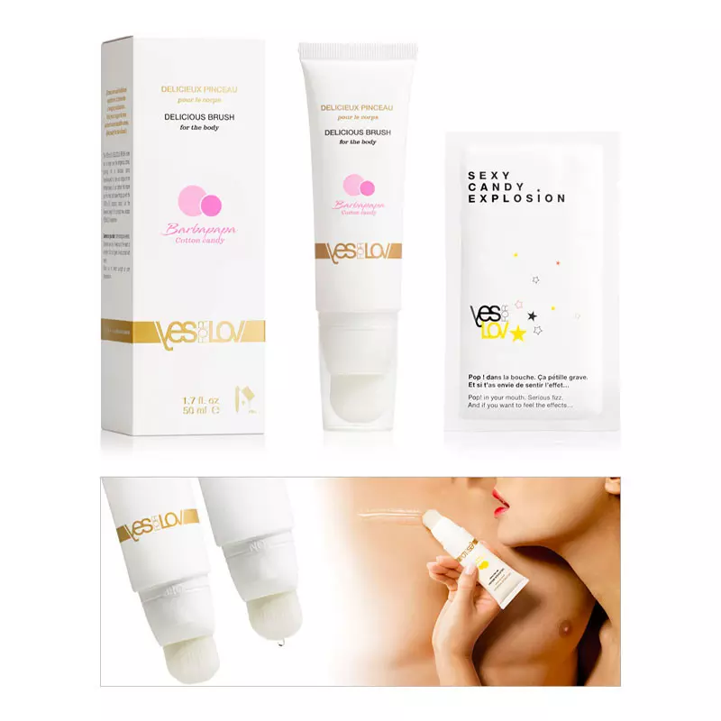Chaque Délicieux pinceau pour le corps YESforLOV est livré avec une pochette de sucre pétillant « Sexy Candy Explosion ». Il s’agit de petits cristaux qui explosent et pétillent au contact de la langue et de la salive. Ce sucre pétillant se combine parfaitement avec une fellation, un cunnilingus ou tout autre jeu coquin…