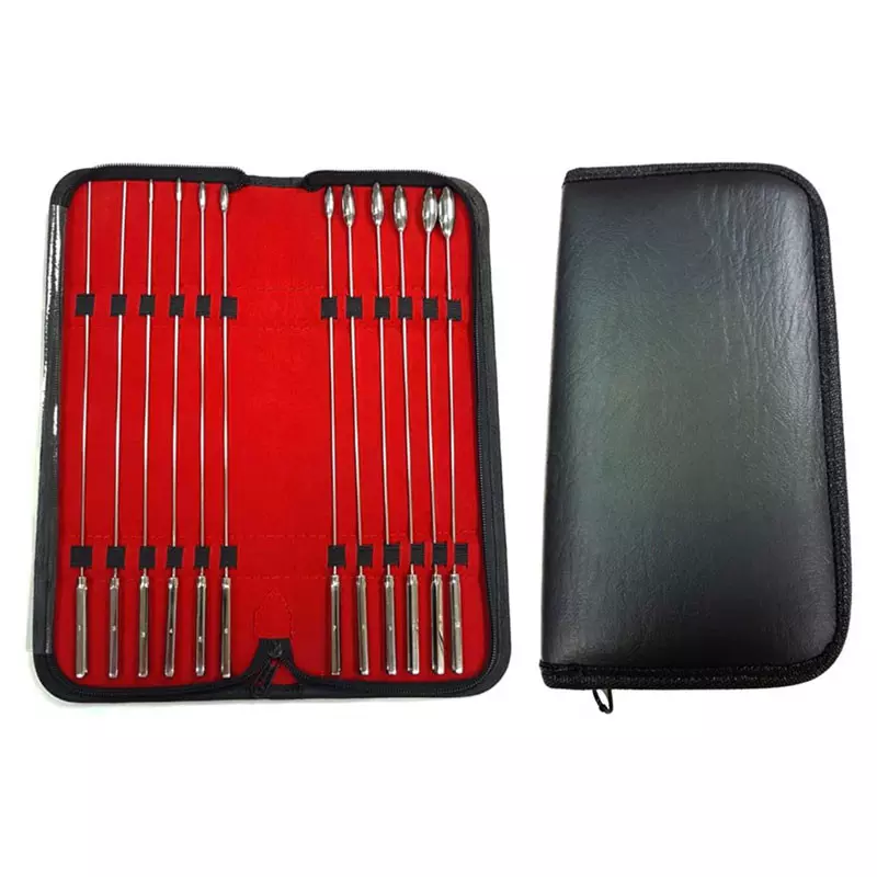 L’ensemble est livré avec huit sondes différentes, d’une longueur de 30 cm. Les tiges en acier fin se terminent par une pointe en forme de « bouton de rose » ou « ogive », disponibles dans une variété de grandeurs allant de 2 mm à 13 mm. Les poignées permettent une manipulation aisée.