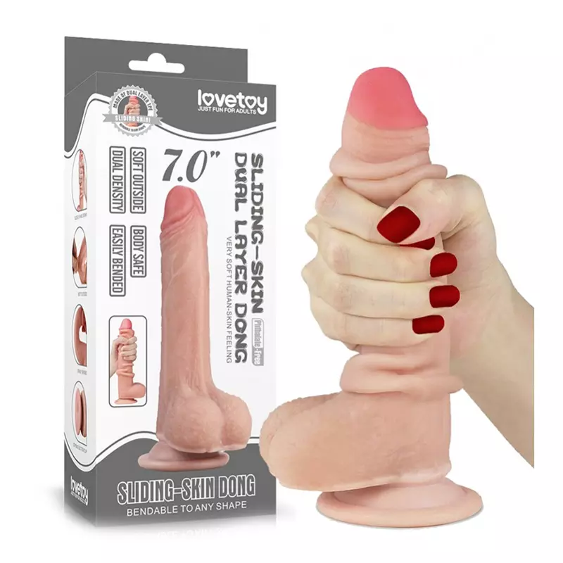 Voici le tout nouveau godemichet super réaliste « Sliding Skin Dong » de la marque Lovetoys. Ce dildo est fabriqué avec un matériau réaliste à double couche de peau coulissante !!! Ce design vous offre alors une sensation similaire à celle que vous auriez avec un véritable pénis.