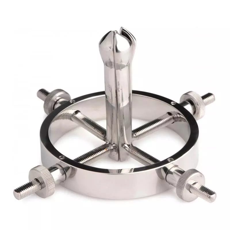 Afin de pouvoir profiter pleinement de cet accessoire sexuel, vous avez la possibilité d’ajuster le diamètre de son écartement en dévissant les quatre écrous à la dimension souhaitée, entre 2 cm et 10 cm au maximum.