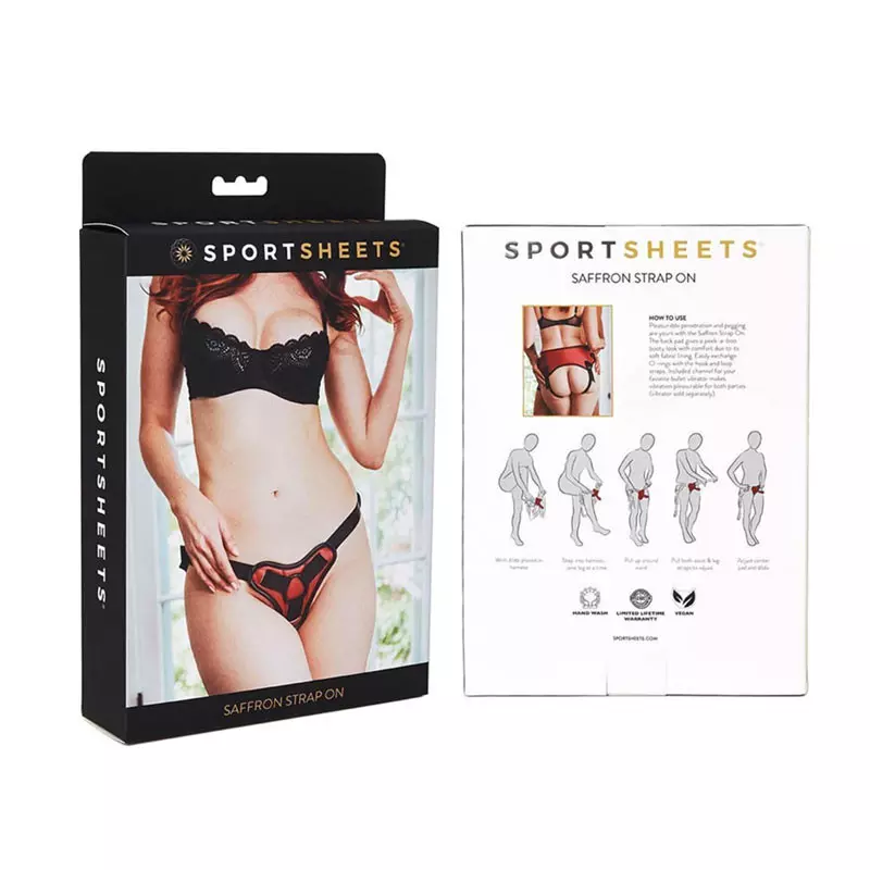 Strap-on Saffron Sportsheets de la marque Harnais : un gode-ceinture élégant, confortable et entièrement ajustable, conçu pour être porté par une femme…