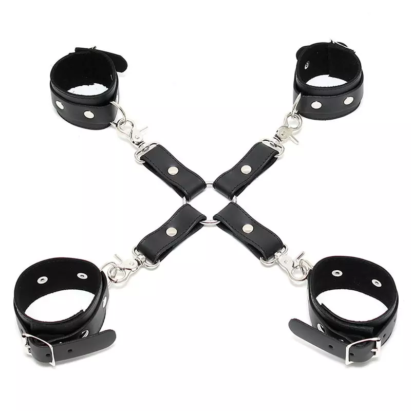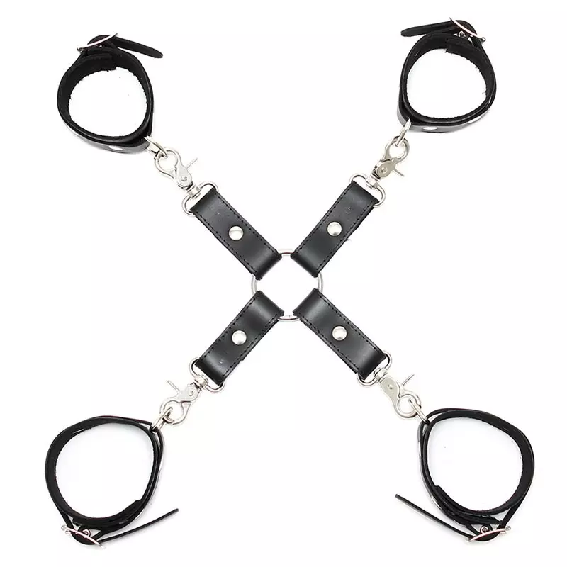 Ce kit d’attache est conçu en cuir de qualité et est très résistant. Il est livré avec une croix et quatre menottes réglables grâce à des boucles.