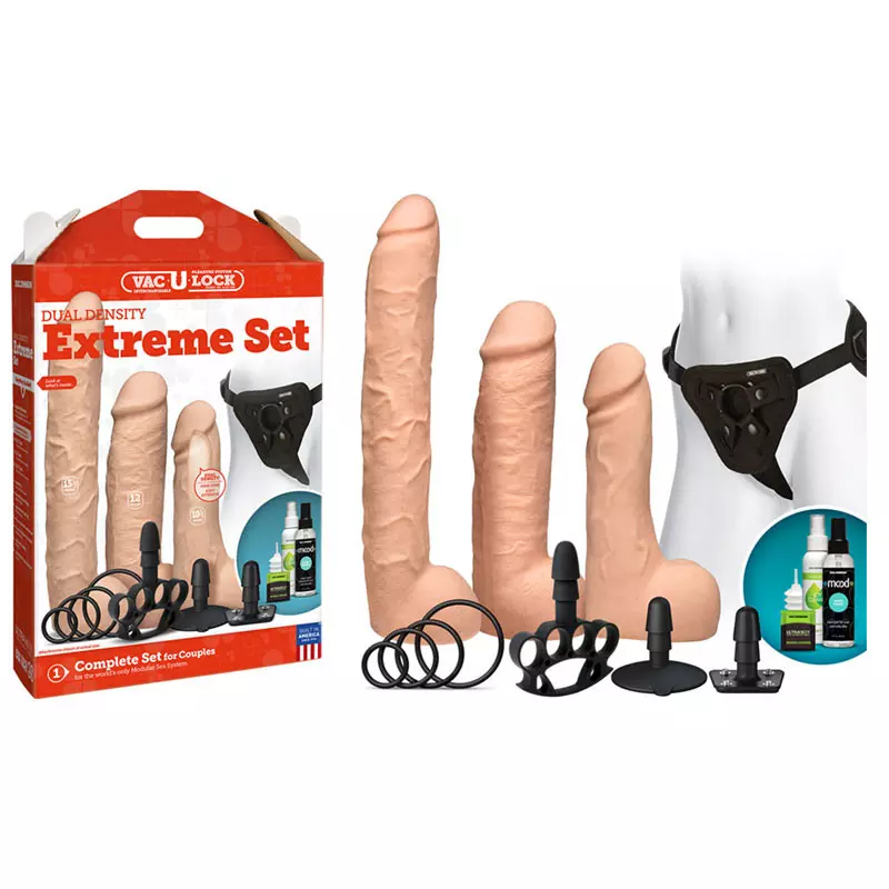Vac-U-Lock Dual Density Extreme Set de Doc Johnson : un kit réservé aux personnes expérimentées, qui contient tout le nécessaire pour des moments de jeux particulièrement intenses…