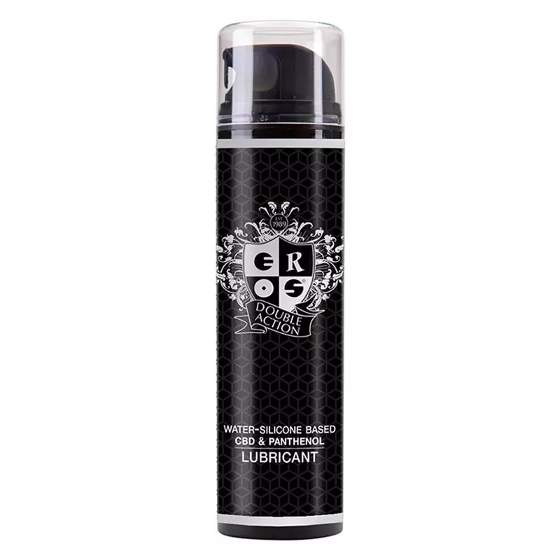 Ce lubrifiant EROS Double action CBD & Panthenol est formulé à base de silicone, d’eau et avec du canabidiol provenant de la plante de cannabis ainsi que du panthénol afin de rendre les zones érogènes moins sensibles.