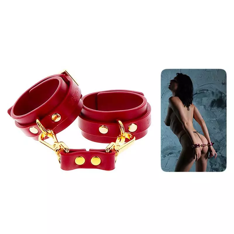 Voici Luxury Wrist Cuffs de la collection Taboom, une paire d’attache pour poignets fabriquée dans un simili cuir bordeaux végan, solide et de qualité supérieure.
