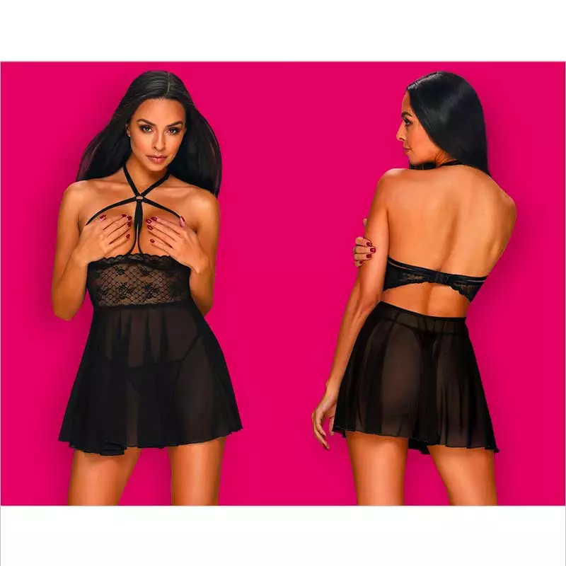 Sa découpe super sexy expose totalement la poitrine, alors que son tissu semi-transparent, laissera entrevoir sensuellement votre corps.