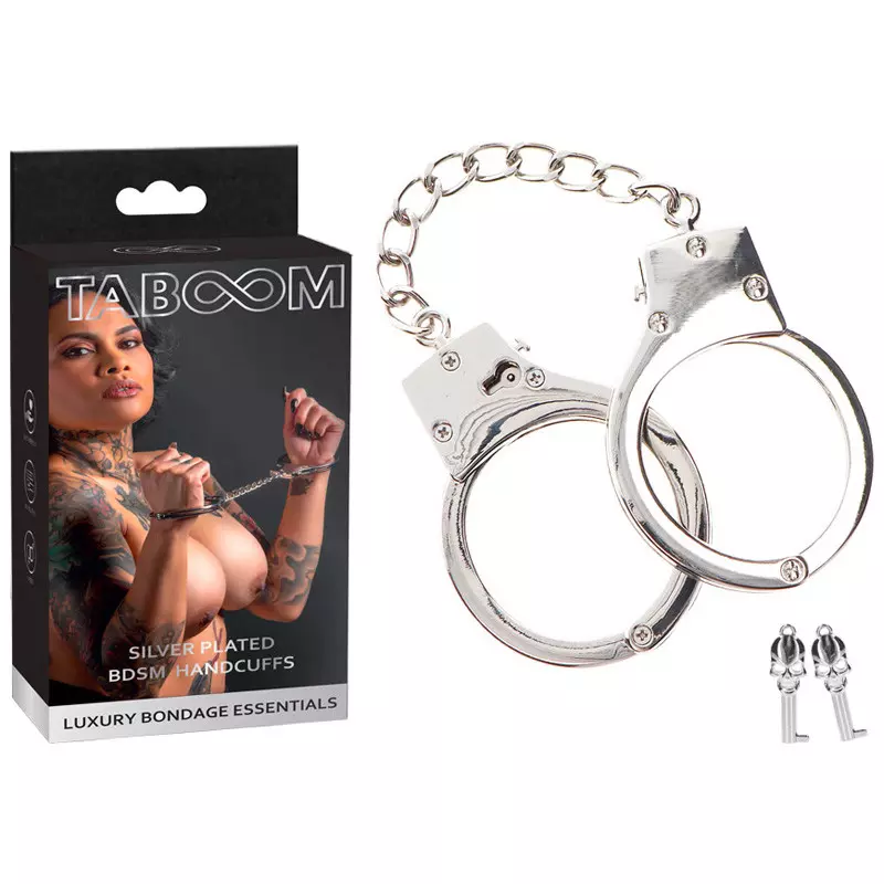 BDSM Handcuffs de la marque Tabou : des menottes métalliques entièrement ajustables qui s’adaptent à toutes les tailles de poignet pour contraindre votre partenaire…