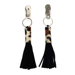 Cette paire de pinces à seins est constituée de 2 anneaux métalliques sur lesquels vous pourrez fixer une petite chaîne et de deux petits fouets en cuir de Suède.