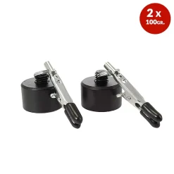 Ces pinces à seins de la marque « Rimba » vont vous procurer des sensations extrêmes en associant souffrance et plaisir ! Vos mamelons seront tirés contre le bas par des poids interchangeables de 100gr. fixés sur chaque pince.