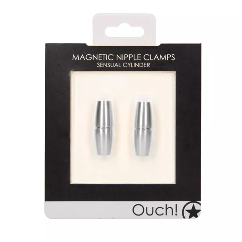 Magnetic Nipple Clamps : des pinces à tétons magnétiques de la marque Ouch! conçues dans en aluminium lisse avec de puissants aimants cylindriques pour serrer vos tétons !!!