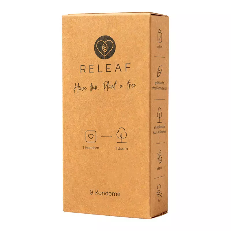 Ces préservatifs sont conçus de manière durable et végétalienne. Chaque personne œuvrant au sein de la chaîne de production de ces contraceptifs est rémunérée de manière équitable et travaille dans des conditions décentes. Releaf collabore avec l’ONG Eden Reforestation Projects et s’engage à planter un arbre pour chaque préservatif vendu !
