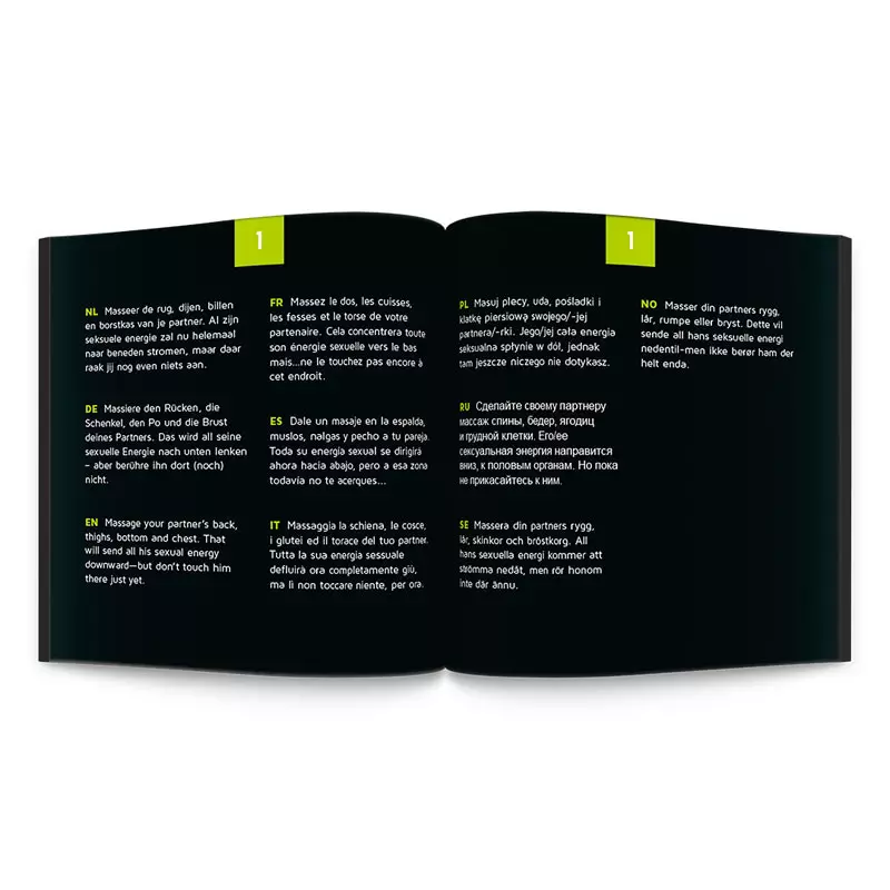 Les 24 défis de l’édition Foreplay sont disponibles en 10 langues: anglais, espagnol, français, allemand, néerlandais, polonais, russe, italien, suédois et norvégien.